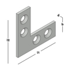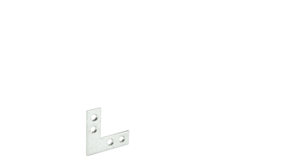 Vlak hoekijzer met schroefgaten. Geschikt om haakse houtverbindingen te versterken.