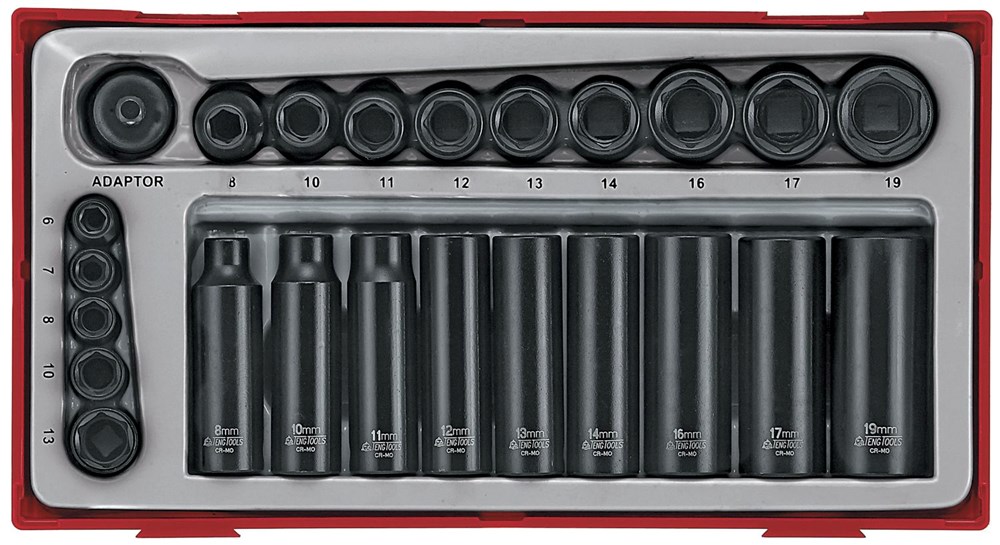24-delige korte en lange 1/4" en 3/8" slagdoppenset van 6 tot 19mm in TC tray.