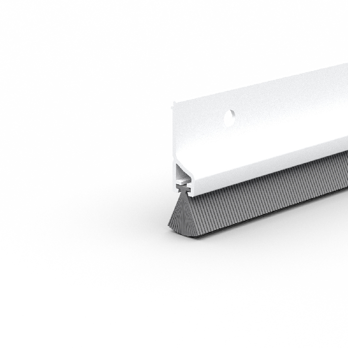 Kunststof dorpelprofiel met zachte borstel, voor montage aan de onderzijde van de deur.