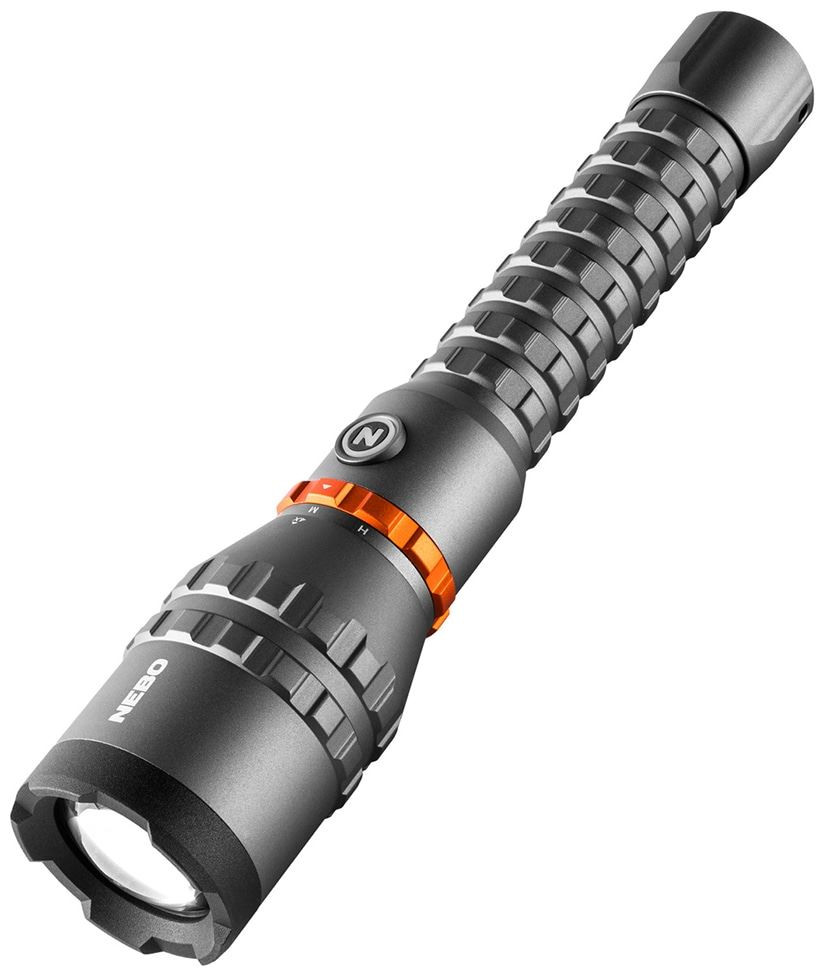 De Nebo Davinci 8000 is een robuuste oplaadbare zaklamp. De Lamp beschikt over een hoogwaardige geanodiseerde aluminium constructie, deze oogt niet alleen aantrekkelijk maar is ook nog eens erg robuust. Verder zorgt zijn getextureerde greep voor extra grip in alle weersomstandigheden. Het selecteren van de lichtstanden doe je met de gebruiksvriendelijke draaischakelaar, deze is gemakkelijk blind te bedienen en schakelt naadloos over tussen de verschillende standen. Verder is de Davinci 8000 verstelbaar en kan zijn bundel tot wel 4 keer inzoomen. De lamp is uitgevoerd met een C.O.B. LED, bij C.O.B. technologie fungeren vele kleine LED's als één grote LED chip en geven ze een gelijkmatig helder licht. De meegeleverde oplaadbare batterij zorgt voor maximaal 45 uur gebruik en dient tevens als powerbank. De Davinci 8000 Beschikt over Smart Power Control, SPC gebruikt het resterend vermogen van de batterij zo efficiënt mogelijk. Hierdoor heeft de lamp een super constante lichtintensiteit en een verlengde brandduur. Lichtstanden: - Turbo / 8000 lumen / 30sec / 206 meter - Hoog / 4000 lumen / 3.5 uur / 157 meter - Gemiddeld / 2000 lumen / 6 uur / 119 meter - Laag / 80 lumen / 45 uur / 25 meter - Strobe / 8000 lumen / 3.5 uur / 206 meter De turbo modus wordt bereikt door de aan/uit schakelaar 2 seconden vast te houden, de lamp zal dan 30 seconden in zijn maximale stand van 8000 lumen staan waarna hij terug zal schakelen naar de laatst gebruikte lichtstand. Verder beschikt de Davinci 8000 over een Strobe-stand deze wordt bereikt door de aan/uit schakelaar 2 maal snel in te drukken. De lamp is IPX67 waterdicht en wordt geleverd met een draagkoord en een laadkabel.