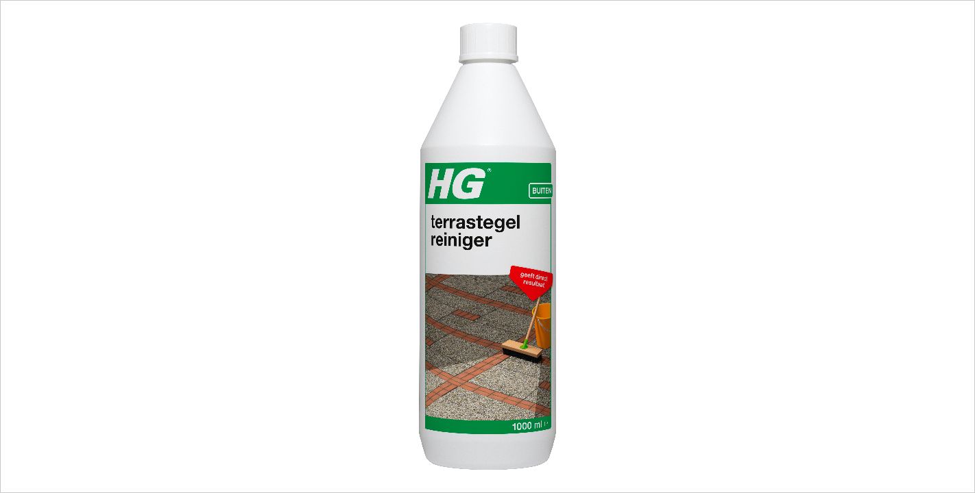 HG terrastegel reiniger is een sterk geconcentreerde reiniger die speciaal is ontwikkeld voor het reinigen van vuile, grauwe grind- en betontegels. Maak de tegels goed nat en vergeet vooral de voegen niet. Veeg de plassen weg. Vermeng de inhoud van de fles met 4 liter water in een bak waar eenharde bezem inpast, bijvoorbeeld een afwasbakje. Doop de bezem in de bak en breng de vloeistof al schrobbend aan. Laat de vloeistof nu eerst enkele minuten inwerken. Dan nog even naschrobben en vóórdat de vloeistof opdroogt de tegels grondig met water afspuiten. Hierna kan eventueel HG terrastegel vernieuwer worden toegepast. Uw tegels krijgen, dankzij dit zeer krachtige en zelfwerkende middel, hun sprankeling en oorspronkelijke kleuren terug en worden zo weer als nieuw.