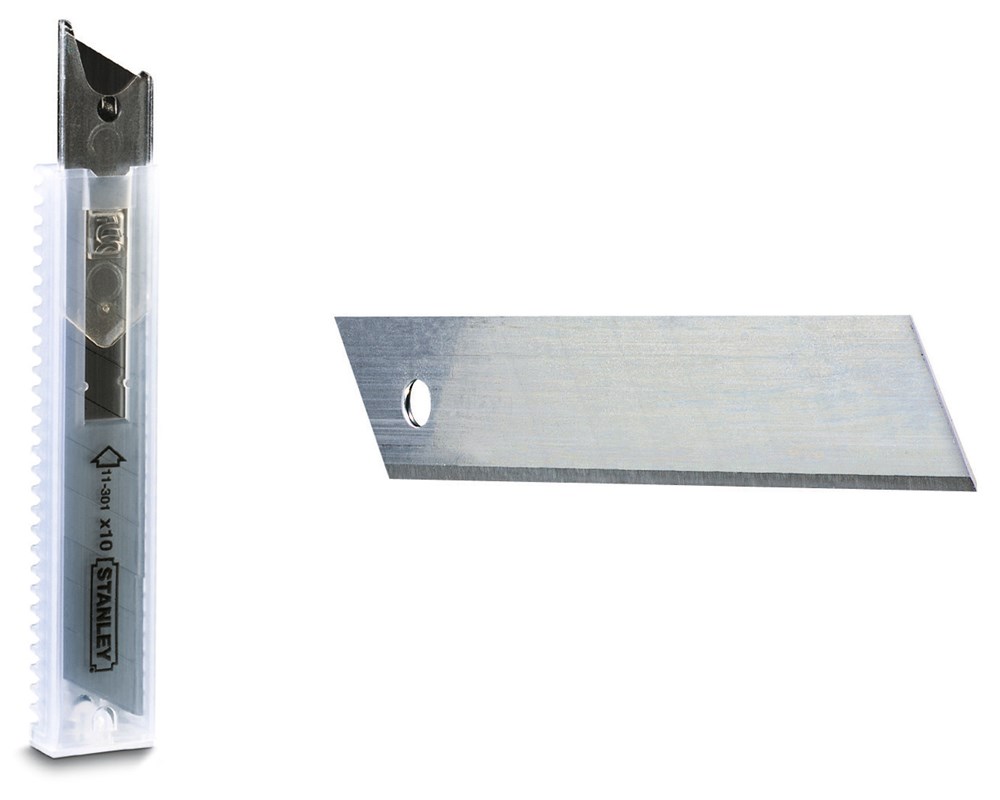 Stanley reserve afbreekmesjes, 18 mm. Verpakt per 10 stuks. Elk mesje heeft 7 afbreeksegmenten.