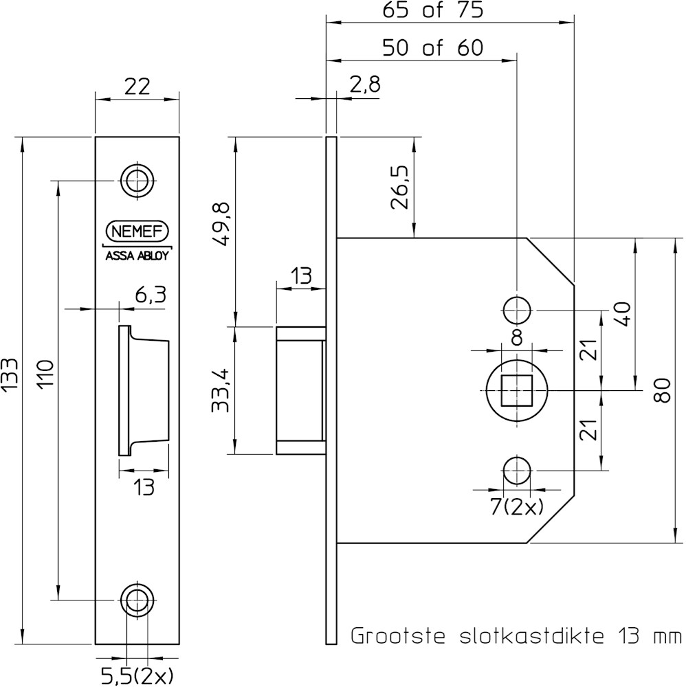• Geschikt voor renovatietoepassingen in loopdeuren in de woningbouw. Standaard slotkast met rechthoekige voorplaat en zamac schoot.