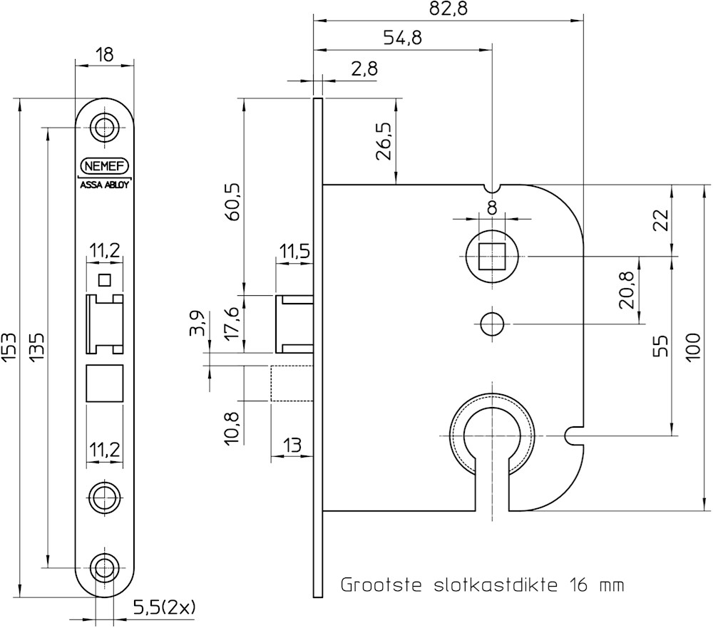 Geschikt voor renovatie toepassingen in afsluitbare binnendeuren in de woningbouw. Standaard slotkast met afgeronde staal gelakte voorplaat