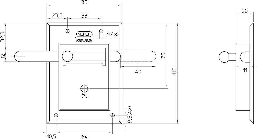 98/12 ,OPLEG GRENDELSLOT, KLAVIERSLEUTEL, SLOTKAST STAAL VERZINK