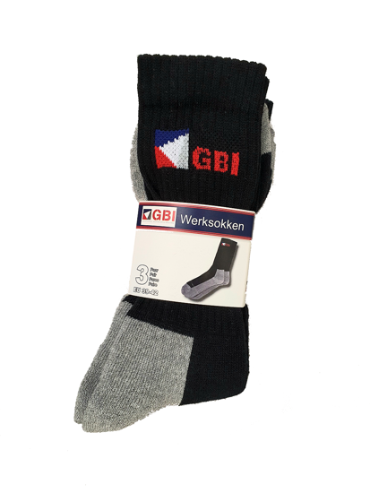 Hoge kwaliteit werksokken van GBI, per 3 paar verpakt. Maat 43-46.