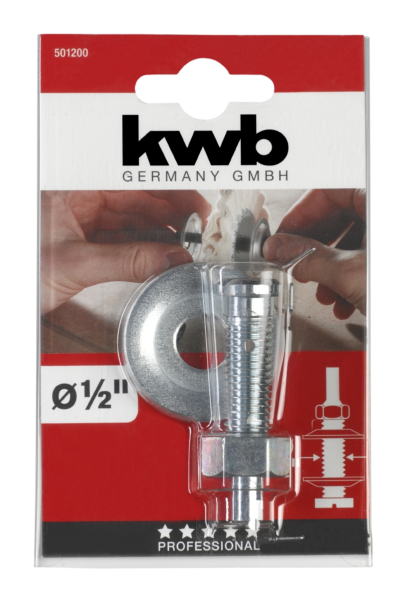 kwb Opspandoorn -- Opspandoorn, linkse schroefdraad, met 2 flensschijven en spanmoer, voor het opspannen van keramische schijven, vilten polijstschijven, lappenschijven, sisalborstels en polijstschijven op alle normaal verkrijgbare boormachines en accuboormachines.