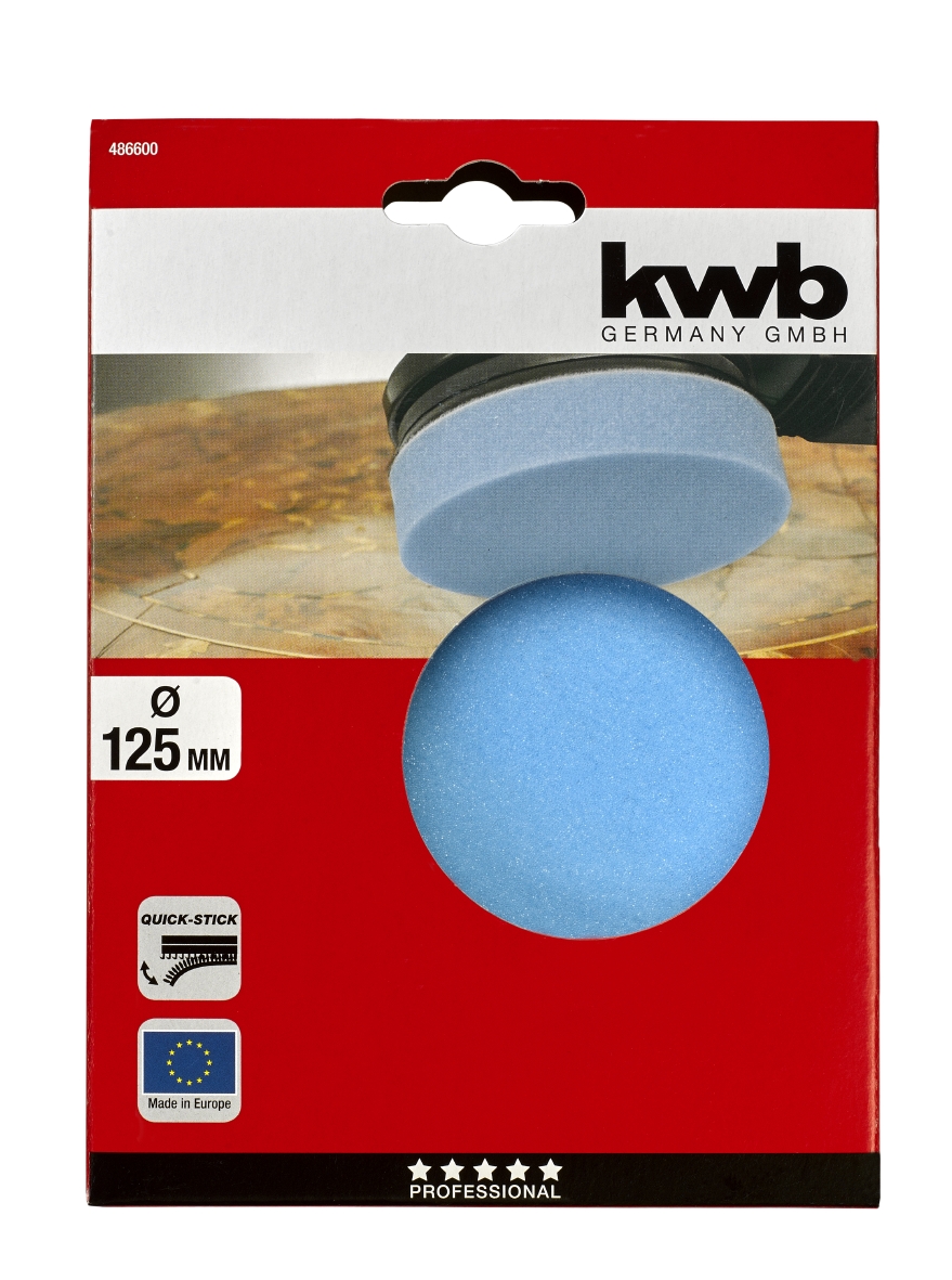 kwb Polijstspons, zelfhechtend Quick stick -- Polijstspons, moltopreen, met velours rug, voor gebruik op hechtsteunschijven met klittenband, m politoer en was aan te brengen op hout, metaal, kunststof, marmer, glas, acryl en autolak.