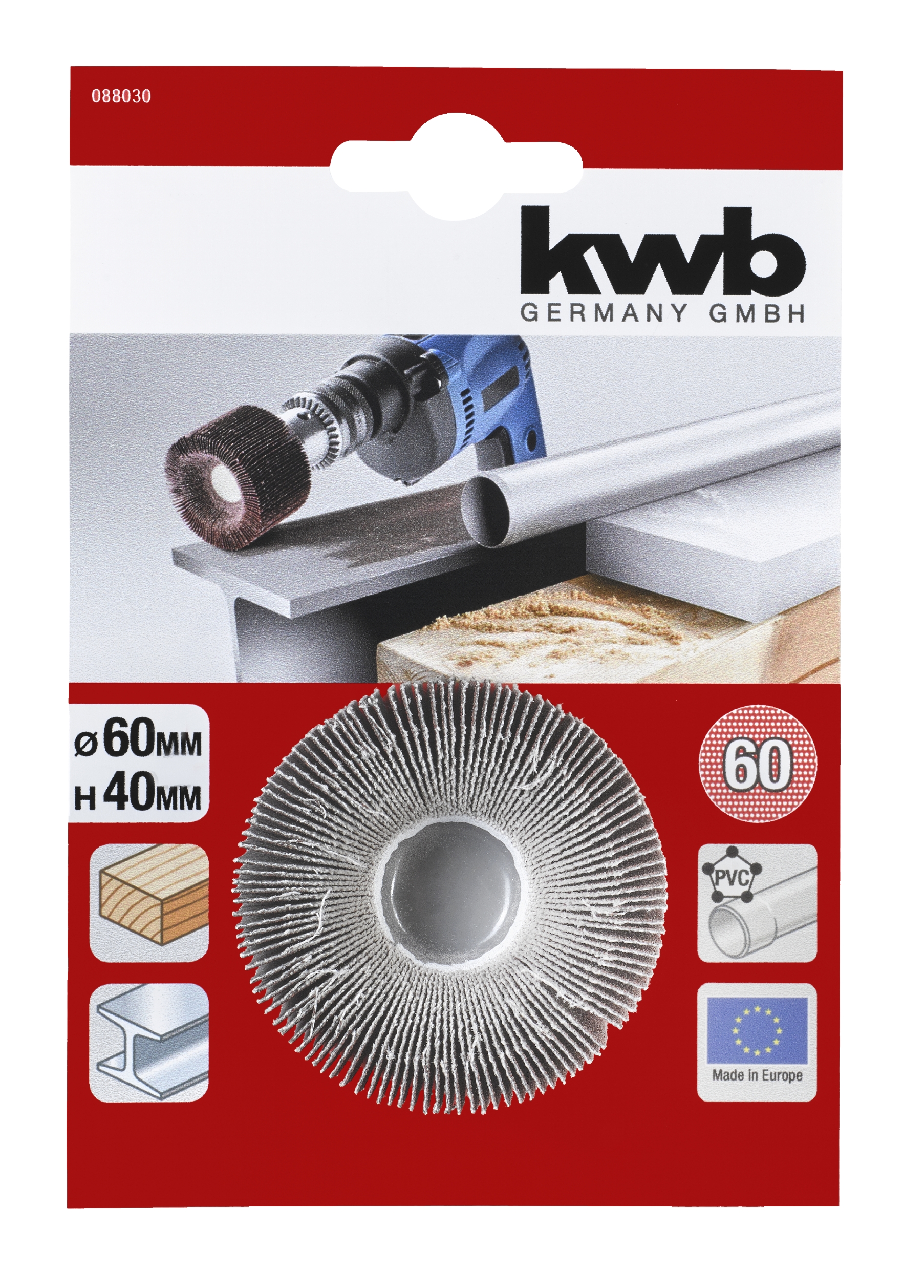 kwb Lamellenslijper, vlakke kop -- Lamellenslijper, korund, vlakke kop, slijpt met het boven- en het zijvlak, voor hout, metaal en kunststof, bijzonder geschikt voor vlakken en ronde voorwerpen.