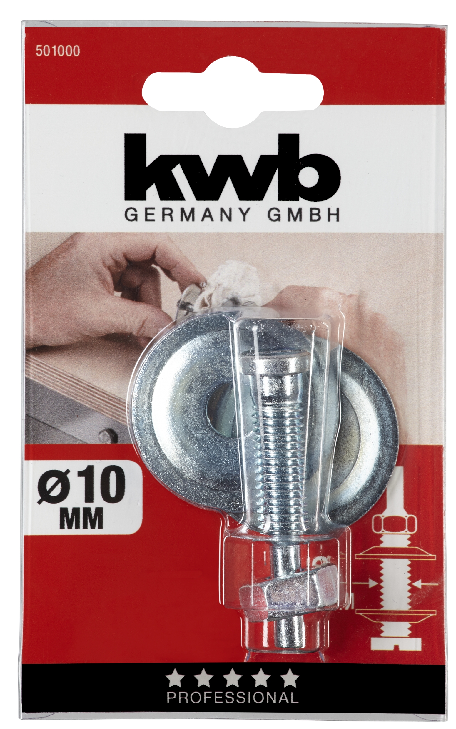 kwb Opspandoorn -- Opspandoorn, linkse schroefdraad, met 2 flensschijven en spanmoer, voor het opspannen van keramische schijven, vilten polijstschijven, lappenschijven, sisalborstels en polijstschijven op alle normaal verkrijgbare boormachines en accuboormachines.
