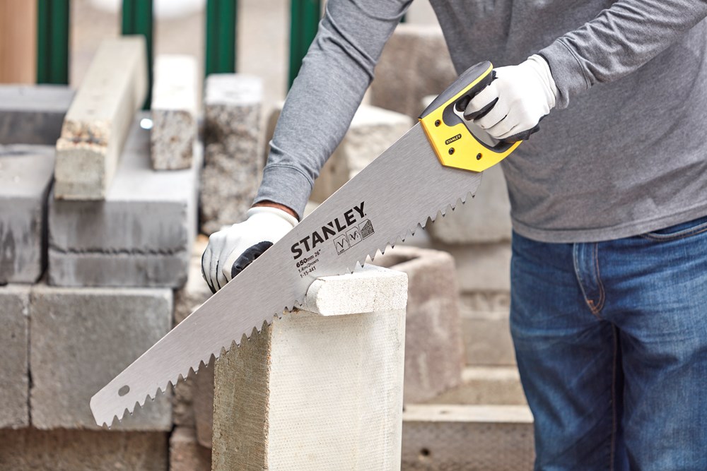 Handzaag met grove vertanding (1,2 tand per 25 mm), ideaal voor bouwstenen en zachte steen