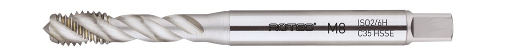 HSS-E machinetappen, DIN 371, metrisch [M], 60°, verdikte schacht, type C, spiraalhoek 35°.