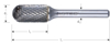 Hardmetalen stiftfrees in cilindervorm met ronde kop, in diverse vertandingen.