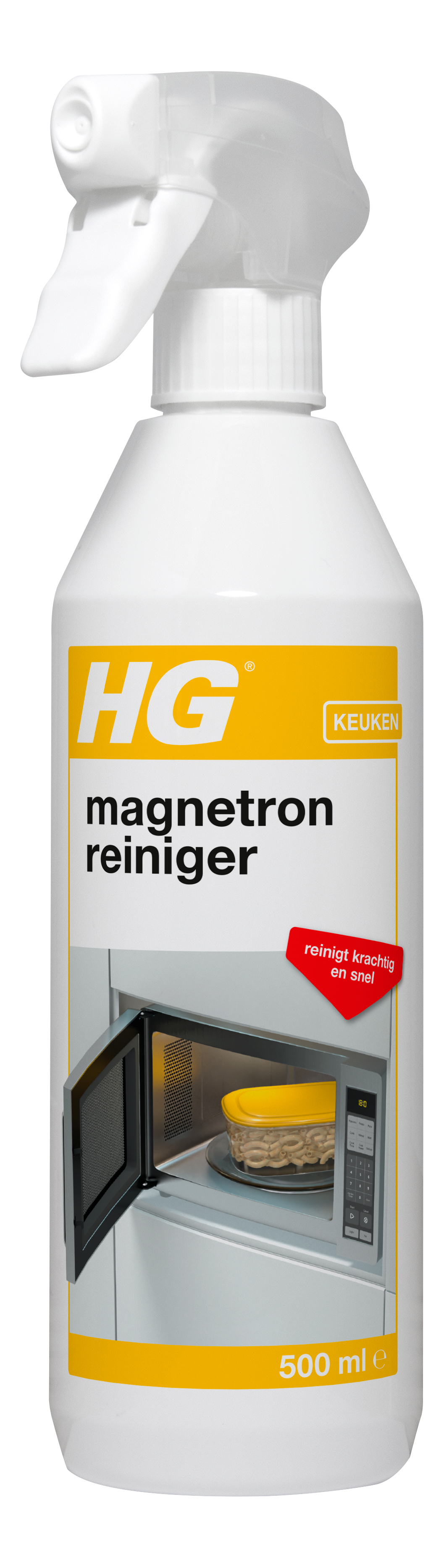 HG (combi) magnetronreiniger is een handige en krachtige alledag sprayreiniger geschikt voor het gemakkelijk verwijderen van vet en (aangekoekte) etensresten in (combi)magnetrons. Het is veilig te gebruiken op alle materialen die in (combi)magnetrons gebruikt worden. Spray het te reinigen oppervlak in met HG (combi) magnetronreiniger en laat het enige seconden inweken. Neem daarna het oppervlak af met keukenpapier. Hierna de gereinigde oppervlakken afnemen met een schone, vochtige vaatdoek.