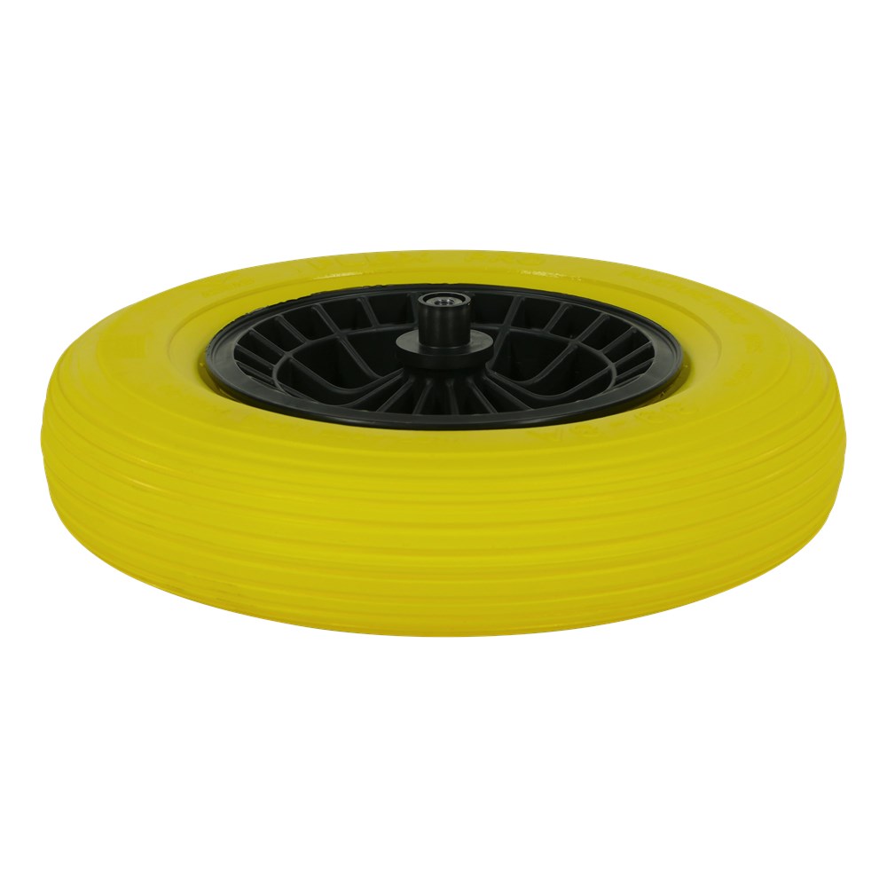 Het FLEX Pro anti-lek kruiwagenwiel is ontworpen voor professioneel en intensief gebruik. De volrubberband is gemaakt van microcellulair polyurethaanschuim, met duizenden microscopische cellen heeft dezelfde flexibiliteit als een luchtband op een harde ondergrond. Ideaal voor zware klussen op de bouwplaats.