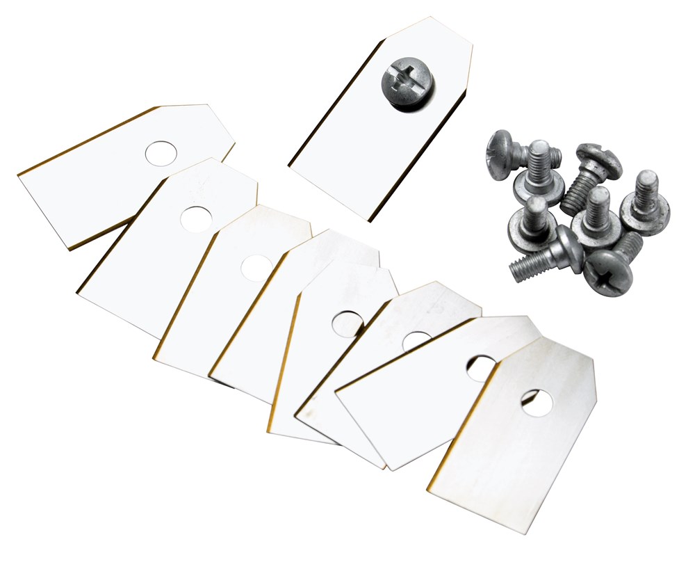 De verpakking bevat 9 reservemessen en 9 bevestigingsschroeven