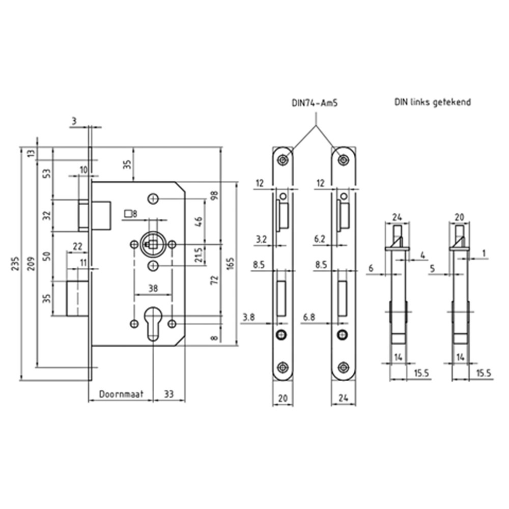MAUER 8255 PZW 55 MM RVS DIN LS VOORPLAAT 235X20MM-U-ROESTVRIJ