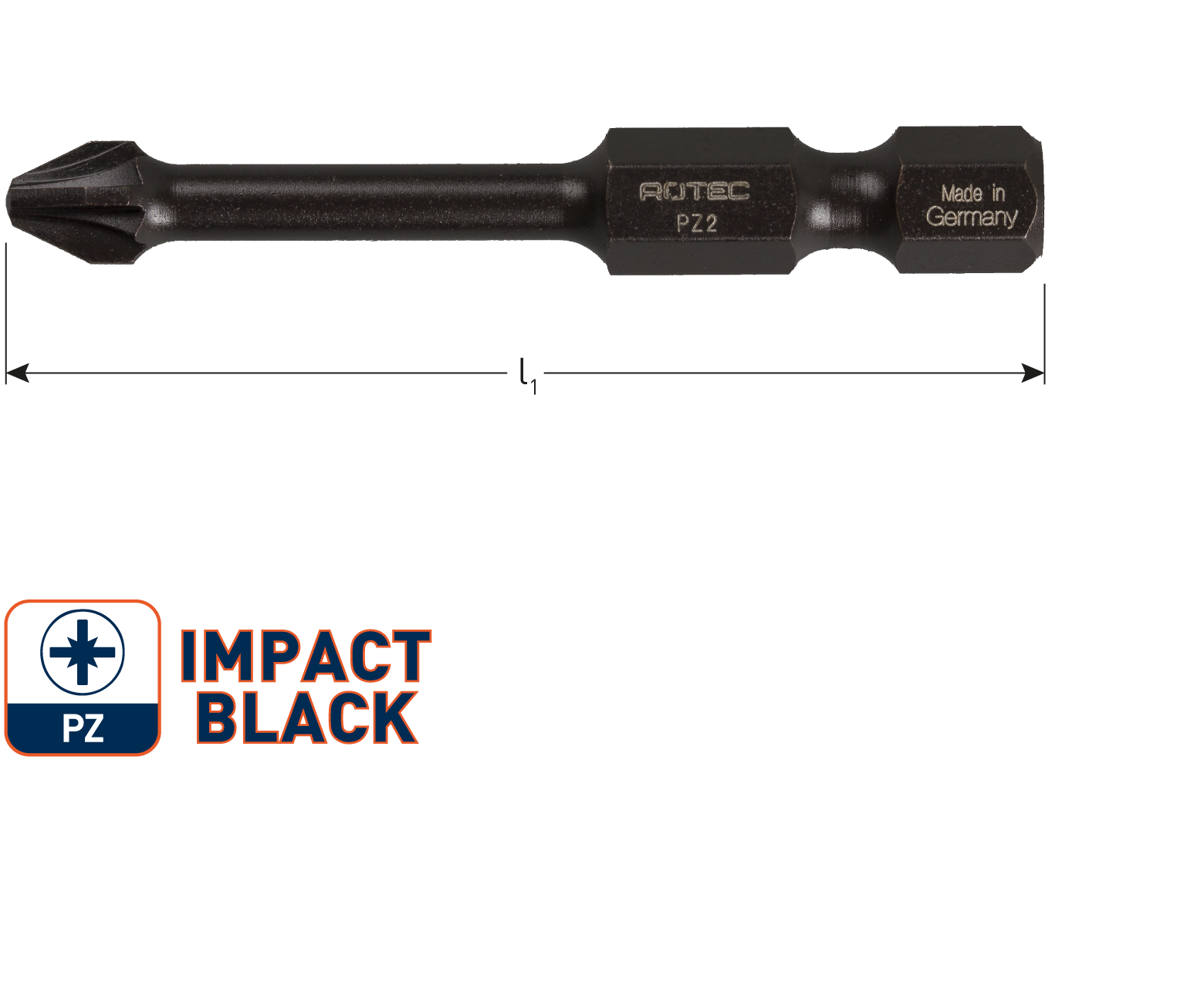 Black-impact schroefbits tbv impact-slagschroefmachines. De aangepaste optimale geometrie vormt samen met het geharde speciaalstaal de basis voor een perfecte taaie schroefbit. Ideale schroefbit om in te zetten onder de zwaarst denkbare omstandigheden.