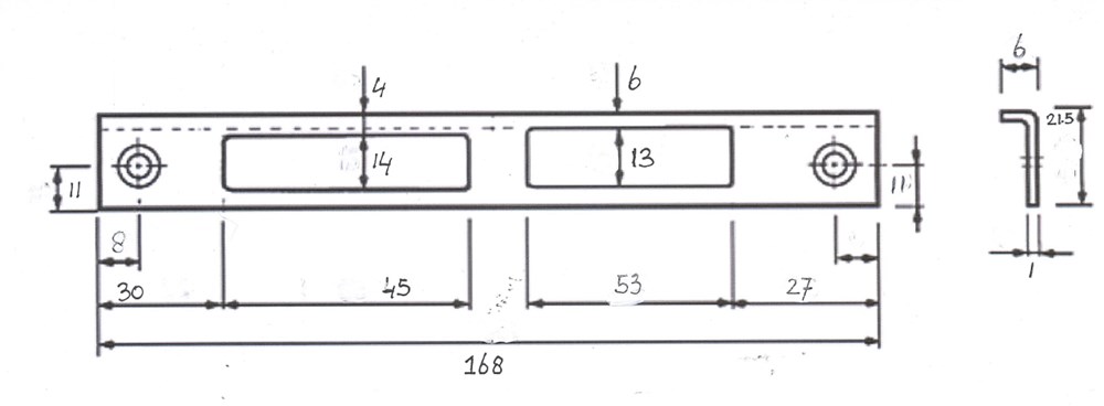 L=168x21,5x1 mm rechthoekig RVS