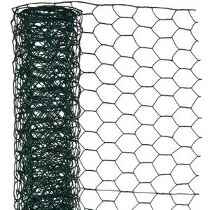 Dit flexibel gaas is gemaakt van verzinkt staal met zeshoekige mazen.