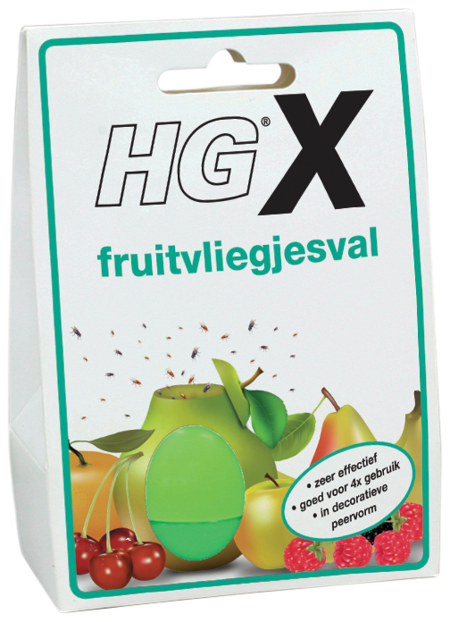 Met name in de zomermaanden kunnen fruitvliegjes een ware plaag zijn. In deze periode van het jaar zijn etensresten of rijpend fruit namelijk zeer aantrekkelijk voor deze hinderlijke en zich snel voortplantende beestjes.De HGX fruitvliegjesval biedt hiervoor een effectieve oplossing dankzij de decoratieve en doeltreffende peervormige val. Want de fruitvliegjes worden aangetrokken door de speciale val-vloeistof en als zij dan eenmaal in de val zitten, kunnen zij zich niet meer voorplanten.Draai het bovenste gedeelte van de val los, verwijder het trechtertje en doseer vervolgens ca 5 ml val-vloeistof in de val. Plaats het trechtertje terug met de tuit naar beneden. Open het bovenste gedeelte van de val door het dekseltje met het blad iets te openen en draai deze daarna op de onderste helft van de val. Plaats de val op een plek waar fruitvliegjes rondvliegen, bijvoorbeeld in de buurt van een fruitschaal.