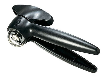 De modernere Sieger blikopener van zwart kunststof.