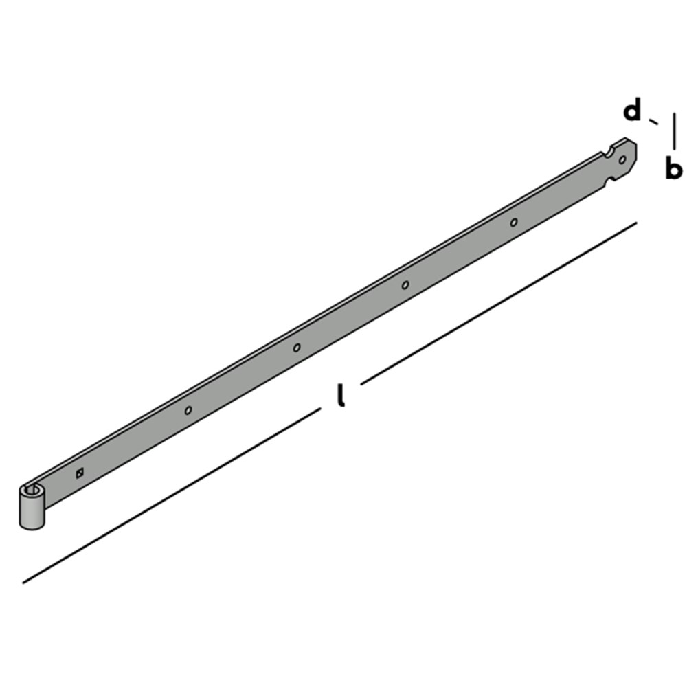 Heng voor het scharnierend bevestigen van poorten en deuren. Uitgevoerd met vierkante (slotbout)gaten. Voor toepassing in combinatie met een duim Ø 16mm.