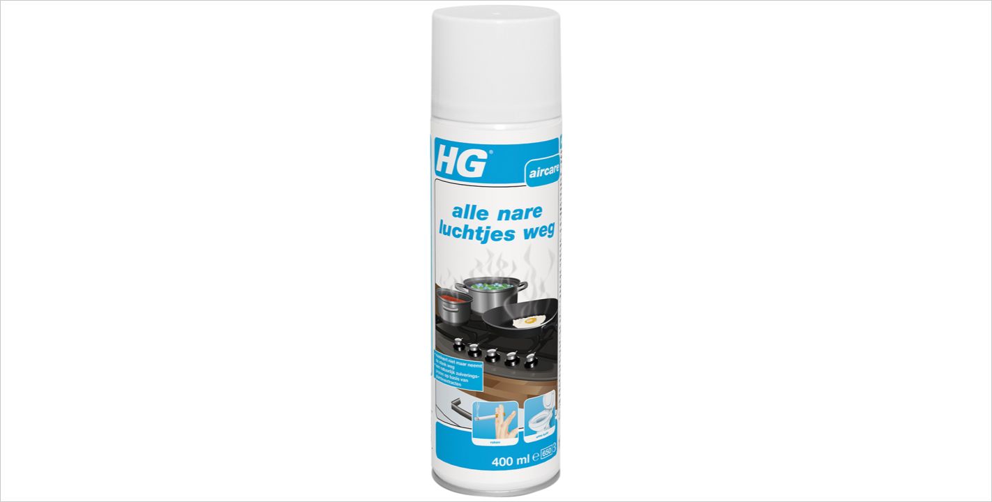 HG alle nare luchtjes weg is een onschadelijk plantenextract op waterbasis, dat nare luchtjes (bijvoorbeeld als gevolg van het vis bakken, spruitjes koken, patat frituren, sigaretten roken etc.) niet maskeert, maar snel, veilig en effectief de moeilijkste luchtjes neutraliseert en een schone en gezonde lucht achterlaat. HG alle nare luchtjes weg is verpakt in een zeer gebruiksvriendelijke spraybus. Doordat deze op luchtdruk werkt, geeft het een zeer mooi constant spraybeeld en kan het in alle standen sprayen. Spray HG alle nare luchtjes weg in ruime mate in de omgeving waar de lucht geneutraliseerd moet worden. Na een kwartier is de lucht weer schoon. Bij hardnekkige geurproblemen kan de behandeling herhaald worden. Indien na 2 behandelingen de nare geur nog niet is geneutraliseerd, dan is er wellicht nog steeds een bron aanwezig welke de nare geur veroorzaakt. Deze bron kan bestreden worden met HG alle nare geurtjes weg.