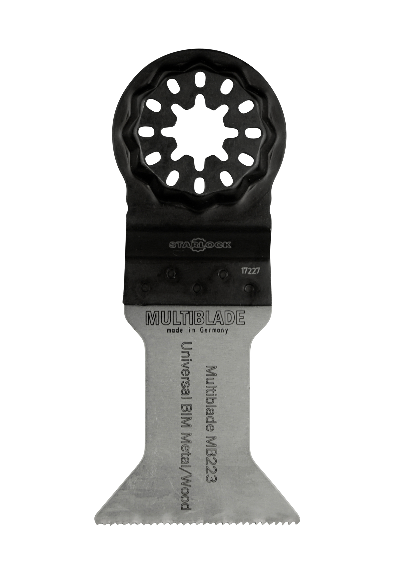 Een bi-metaal zaagblad van 44 mm breed, geschikt voor metaal tot 2 mm, alluminium hout, buizen, bijvoorbeeld kunststof.