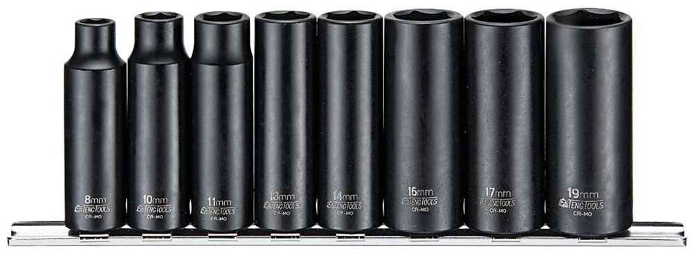 8-delige lange slagdoppenset 3/8" 6-kant.