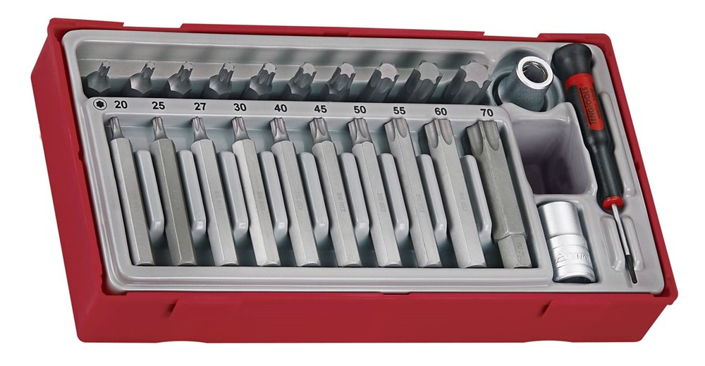 Set van 20 korte en lange bitsen Tx met aansluiting Hex 10mm en 12mm.