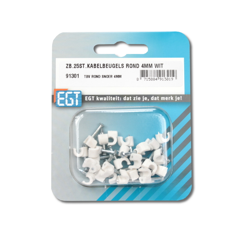 25 STUKS KABELBEUGEL ROND 4MM WIT
