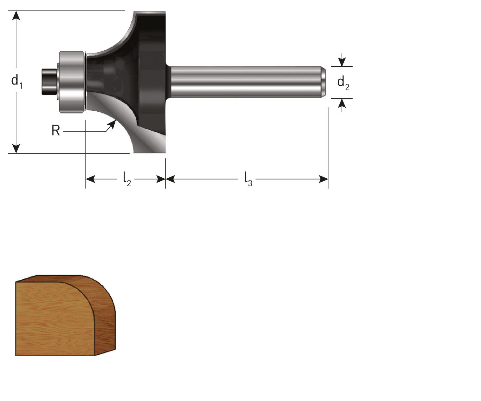 HM AFRONDPROFIELFREES, GOLD-LINE, ø25,4, R=6,35, D2=8