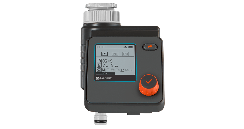 Met behulp van de GARDENA besproeiingscomputer kan de besproeiing flexibel en individueel worden ingesteld. Er kunnen maximaal drie verschillende en onafhankelijke planningen worden gemaakt. Het apparaat werkt op batterijen, is rechtstreeks op de kraan aangesloten en kan eenvoudig worden bediend met alleen een draai- en drukknop om de gegevens te selecteren en te bevestiging. Een gemakkelijk leesbaar display toont alle instellingen in één oogopslag. Het weerbestendige bedieningselement kan worden verwijderd. De besproeiingscomputer Select kan worden gebruikt in combinatie met een GARDENA bodemvochtigheidssensor.