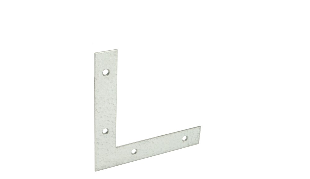 Vlak hoekijzer met schroefgaten. Geschikt om haakse houtverbindingen te versterken.