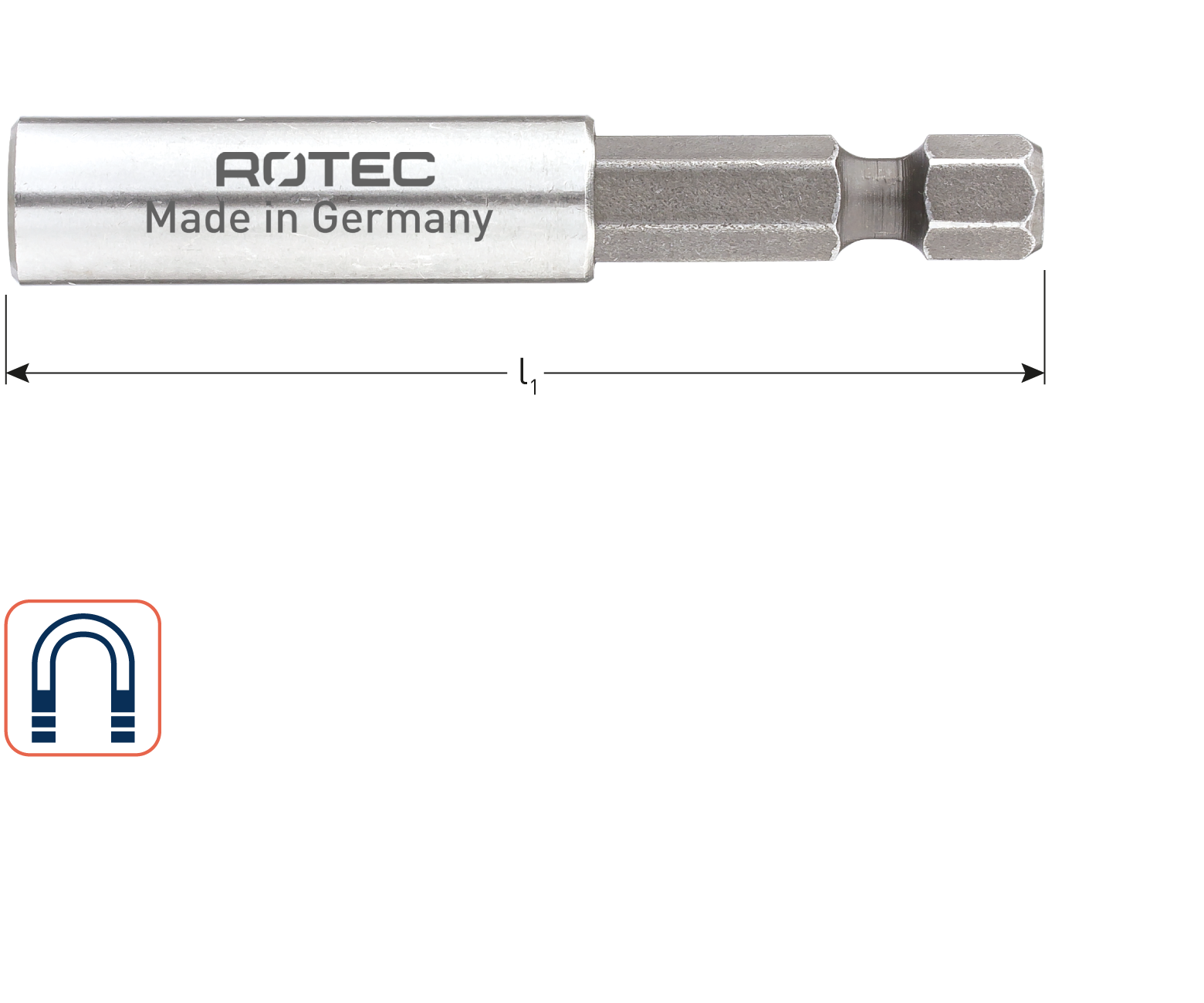 Magn. bithouder E 6,3 x 60mm, zonder C-ring. Verpakt in kleinverpakking