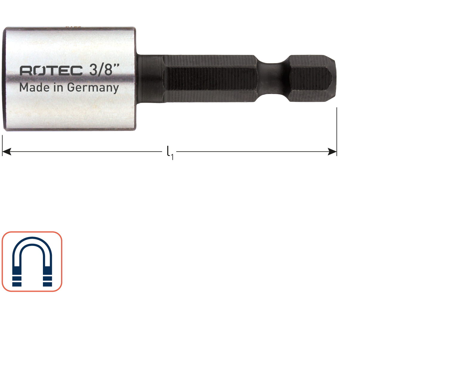 DOPSLEUTEL E6.3 1/4" BITOPN., MAGNETISCH, SW 3/8"X50
