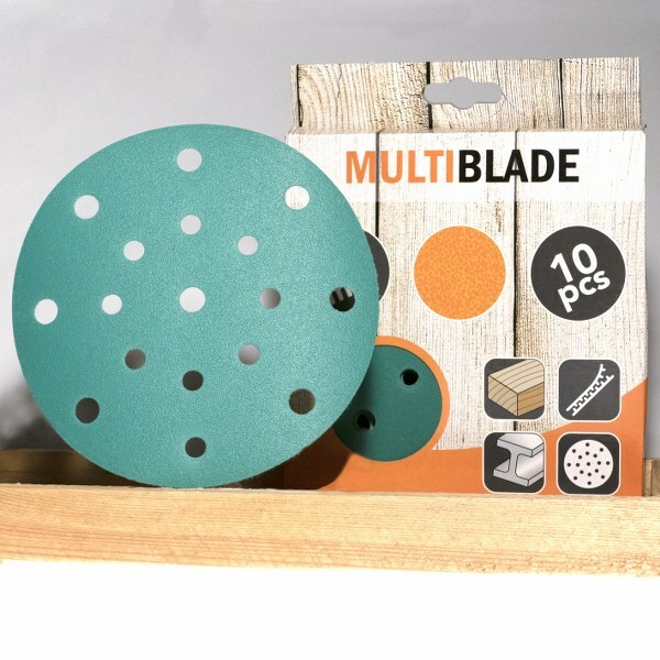 Multiblade MB150 professioneel schuurschijf met een diameter van 150mm. Dit schuurpapier is universeel en voorzien van 17 stofgaten. Dit schuurpapier is zowel geschikt voor Hout als metaal en automotive. Het schuurpapier is verpakt in een set van 10 en heeft een grofheid van korrel 400 en is voorzien van klittenband.