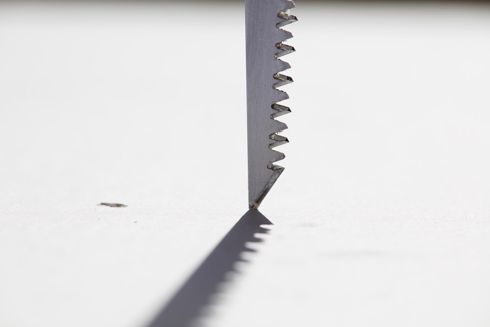 Geslepen punt en dikker blad om gemakkelijker door gipsplaten te zagen