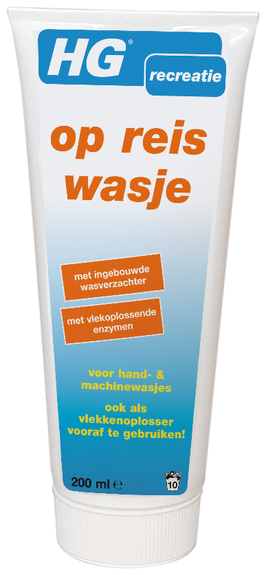 Het is natuurlijk al erg genoeg als er op reis gewassen moet worden. Maar als het dan toch moet dan het liefst wel goed. HG op reis wasje is hét ideale wasmiddel voor op reis want deze handige en compacte tube bevat het allerbeste en allerveiligste wasmiddel mét ingebouwde wasverzachter, waardoor het wasgoed heerlijk schoon en zacht wordt. Door de toevoeging van enzymen is HG op reis wasje ook te gebruiken als vlekkenoplosser om vlekken te verwijderen. HG op reis wasje is pH-neutraal en bevat geen bleekmiddelen of fosfaten. Knijp voor de handwas een sliert van 10 centimeter HG op reis wasje in 5 liter handwarm water. Dompel het textiel onder en laat het inweken. Door stof op stof te wrijven worden sterk vervuilde delen nog beter gereinigd. Na de inweektijd het textiel goed uitspoelen, uitwringen en laten drogen. Knijp voor de machinewas een sliert van ongeveer 20 centimeter HG op reis wasje in de wastrommel op het wasgoed en start daarna het gewenste programma. Als vlekkenoplosser wordt HG op reis wasje direct op de vlek aangebracht. Masseer het product in en laat dit vervolgens ongeveer 5 minuten inwerken. Spoel het na 5 minuten uit of was het direct met het overige wasgoed mee.