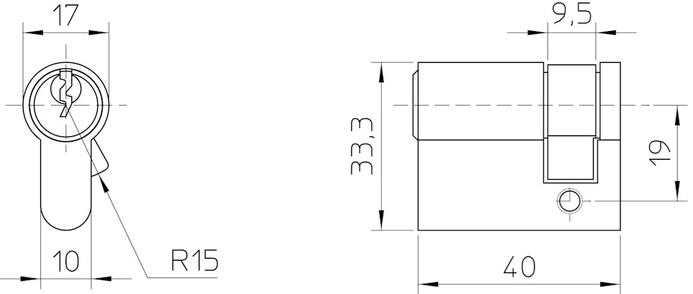 Enkele messing mat vernikkelde 17 mm europrofielcilinder
