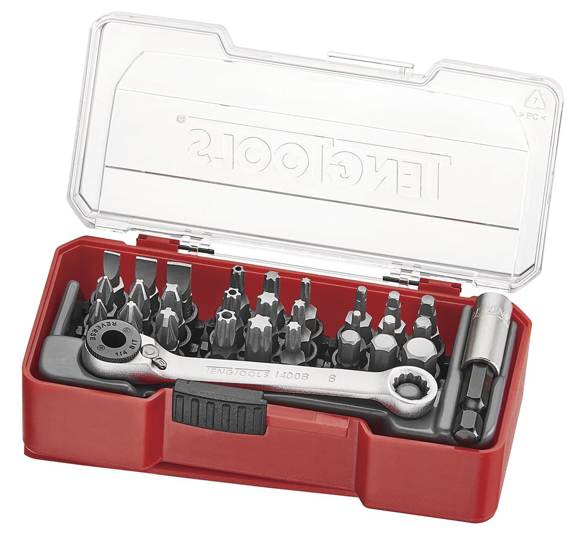 Bitsset 1/4" 29-delig.Inhoud :27 bits plat, PH, PZ, TX, TPX, Hex en RobxBitsratel 1/4"Magnetische bitshouder 50 mmTip : Te combineren met 3 andere TJ dozen, om in de TC-tray TTTJ04 op te bergen