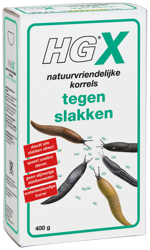 Er bestaan een tweetal groepen slakken: naaktslakken en huisjesslakken. Met name de naaktslakken kunnen zeer grote (vraat)schade aanrichten aan de zachte delen van uw sierplanten en groenten. Bestrijdt deze vraatzuchtige slakken daarom snel, veilig en effectief met HGX natuurvriendelijke korrels tegen slakken. Dit product bestaat uit 100% natuurlijke strooikorrels die de slakken doodt in hun natuurlijke schuilplaats zodat er geen slijmerige slakkenresten achter blijven. HGX natuurlijke korrels tegen slakken heeft een lange werkingsduur en is absoluut ongevaarlijk voor andere dieren en huisdieren. Zodra slakken of slakkenvraat wordt waargenomen, de korrels gelijkmatig tussen de planten strooien. Slakkenseizoen: maart tot half oktober. 400 gram (Toelatingsnummer Nederland: 12774N)Gebruik biociden veilig. Lees vóór gebruik eerst het etiket en de productinformatie.