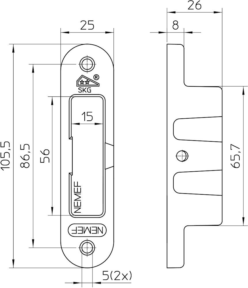 Afmetingen sluitkom (LxBxH) 105,5 x 25 x 26 mm