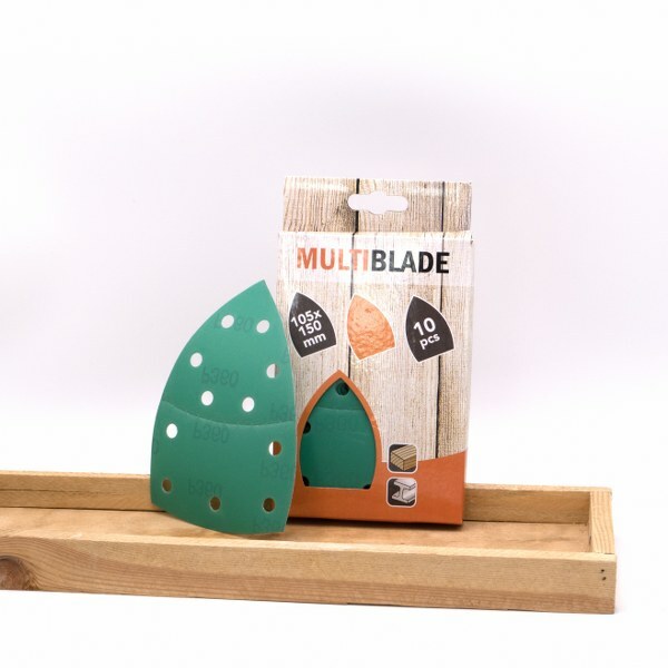 Multiblade MB62 professioneel schuurpapier in de vorm strijkijzer met de afmetingen 100×62+93mm. Dit schuurpapier is universeel en voorzien van 11 stofgaten. Dit schuurpapier is zowel geschikt voor Hout als metaal en automotive. Het schuurpapier is verpakt in een set van 10 en voorzien van klittenband. Het bijzondere aan dt schuurpapier is is dat het puntje afscheurbaar is en de draaien. Dit schuurpapier is verkrijgbaar van korrel 40 tot 400