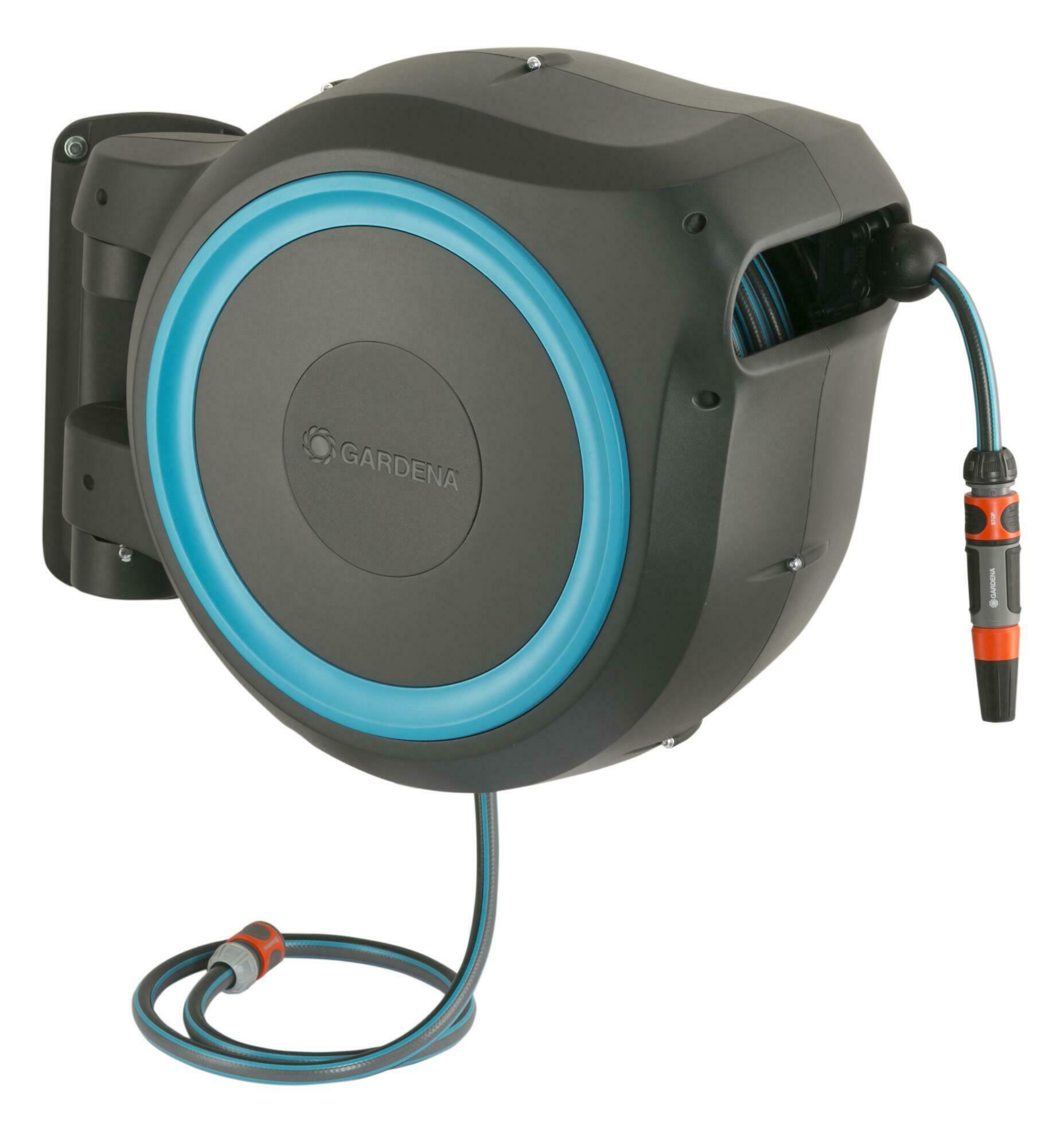 De GARDENA Comfort wandslangenbox 25 roll-up automatic maakt besproeien bijzonder eenvoudig en comfortabel. De slang wordt automatisch opgerold. De praktische slangenbox wordt aan de muur bevestigd en is 180 ° zwenkbaar. De slang kan met weinig inspanning worden uitgetrokken en gestopt met korte tussenpozen van maximaal 50 cm. De kwaliteitsslang van 13 mm (½'') levert een hoge waterdoorstroom en optimale werking van de sproeier. Met een korte ruk aan de slang, wordt de vergrendeling opgeheven en wordt de slang door de roll-up automatisch de box ingetrokken zonder dat u hier verder iets voor hoeft te doen. Uw handen blijven schoon. Een geïntegreerde stalen veer perfect op de slanglengte afgestemd, zorgt voor een krachtige, gelijkmatige slangretractie. De geïntegreerde slanggeleider voorkomt verdraaien en verstrengeling van de slang. Na gebruik kan de aansluitslang eenvoudig op de druppelstop bevestigd worden om weglopen van water te voorkomen. Broezen, sproeiers en wasborstels kunnen worden opgehangen aan de wandhouder zodat ze altijd onder handbereik zijn. Voor de winter kan de slangenbox eenvoudig met de ergonomisch gevormde handgreep van de houder afgehaald worden voor opslag in een vorstvrije ruimte. De wandslangenbox is compleet uitgerust met een 25-meter lange kwaliteitsslang, een 1,5 meter lange aansluitslang, een traploos verstelbare tuinspuit (art. nr. 8114) en de benodigde Original GARDENA System onderdelen: drie slangstukken (art.nr. 900, 901, 902), een standaard slangkoppeling (art. nr. 915) en een waterstop (art.nr. 913).