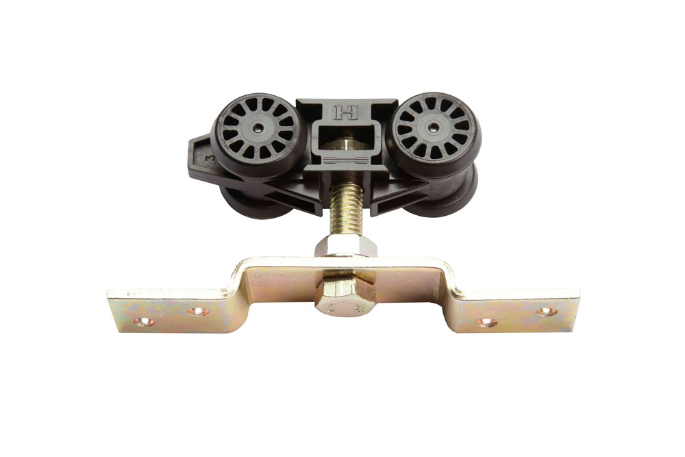 Hangrol met bevestigingsplaat voor houten of metalen deur, voor rail 280, 280A en 280AN - 100 kg, kunststof huis